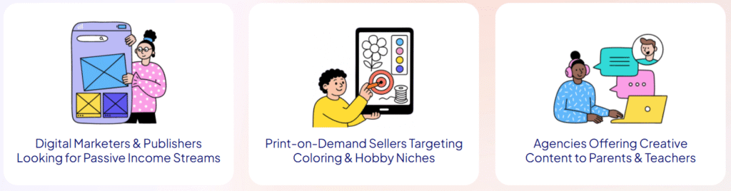 • Print-on-Demand Sellers: Expanding their product range by turning coloring book designs into merch like mugs, t-shirts, and more.